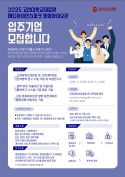 모집 대상은 현재 고려대 혹은 고대의료원과 산학협력 연구를 수행하고 있거나 대학 보유 기술이전·자문 등 협력 연구 시스템 구축이 필요한 기업, 동화바이오관 발전 계획 및 방향성에 부합하는 기업(감염병, 신약 개발, 디지털 헬스케어 등)이다.