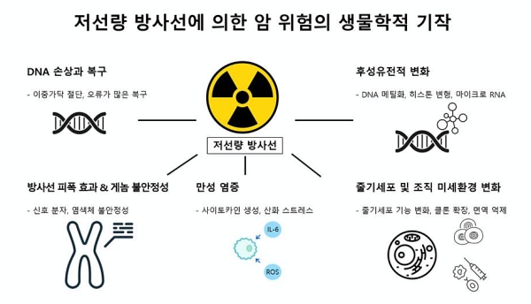 히로시마·나가사키 원폭 피해 생존자들을 대상으로 한 연구 결과는 방사선이 인간에게 암을 유발할 수 있다는 사실을 입증하는 데 중요한 근거가 됐다. 이들은 수백 mGy(밀리그레이) 이상의 매우 높은 방사선량을 단시간에 받았는데, 이를 바탕으로 방사선량과 암 발생 사이의 인과관계를 도출해 낸 것이다.