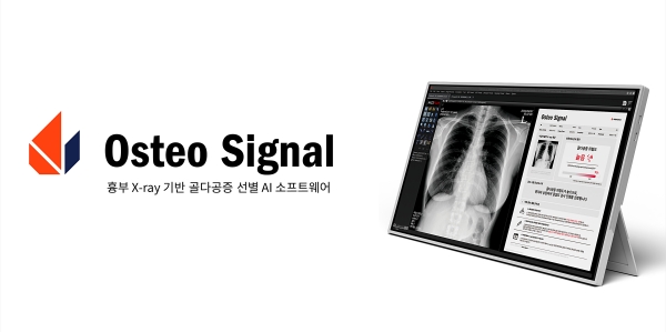 오스테오 시그널은 50세 이상 수검자의 흉부 X-ray 영상을 분석해 골다공증 위험도를 선별하고, 의료진의 진단을 보조하는 인공지능(AI) 소프트웨어 의료기기다. 수검자가 건강검진·외래·입원 등 상황에서 흉부 X-ray를 촬영하면 오스테오 시그널이 골다공증 위험도를 자동 분석하고 결과 리포트를 의료진에게 전달한다.