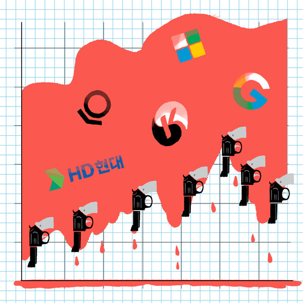 국내에서 집단학살에 가담하는 기업들에 대한 관심이 소홀한 틈에, 팔란티어(Palantir) CEO의 방한과 성수동 팝업스토어는 ‘쿨한’ 테크기업의 비즈니스 행보로만 보도되었다. 소위 ‘서학개미’가 많이 매입한다는 미국 3대 주식 중 하나라서 그런지, CEO 알렉스 카프의 극우정치적 행보나 서방과 미국중심의 이익에 철저하겠다는 기업방침, 소비자-비친화적 판매전략도 전혀 비판대상이 되지 않았다.