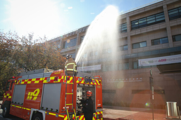 이번 훈련은 범정부 차원의 정례 종합 재난대응 훈련이다. 의학원은 의료기관으로서 특성과 기능을 반영해 다중이용시설 화재 발생과 대량 환자 유입이라는 복합 재난 상황을 가정해 대응 훈련을 실시했다.