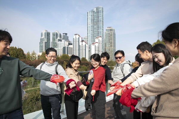 임직원들은 드레스코드인 빨간색 복장을 착용하고 남산 둘레길, 구리 한강변, 강서, 강남, 광주, 대구 등 전국 각지의 산책로를 함께 걸었다.