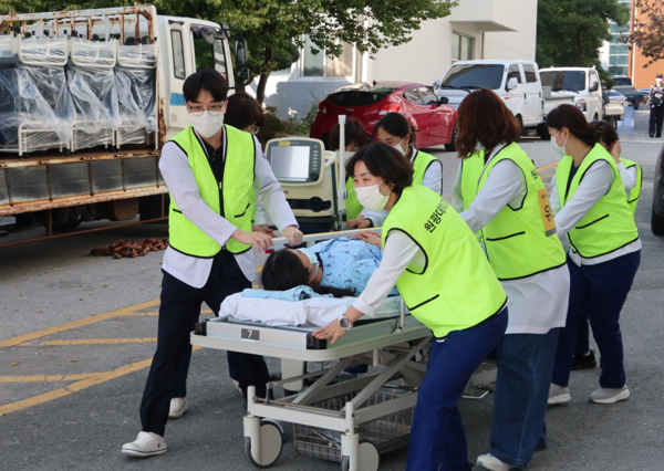 익산소방서와 합동으로 진행한 이번 훈련에선 화재 경보와 전파 요령, 입원 환자 유도 및 인명구조, 자체 소방장비 활용으로 초기 진압 및 유관기관 협조체계 운영, 화재피해 최소화와 진화 작전 및 응급조치, 시설 응급 복구 요령과 방호 조치 강화를 중심으로 실시했다.