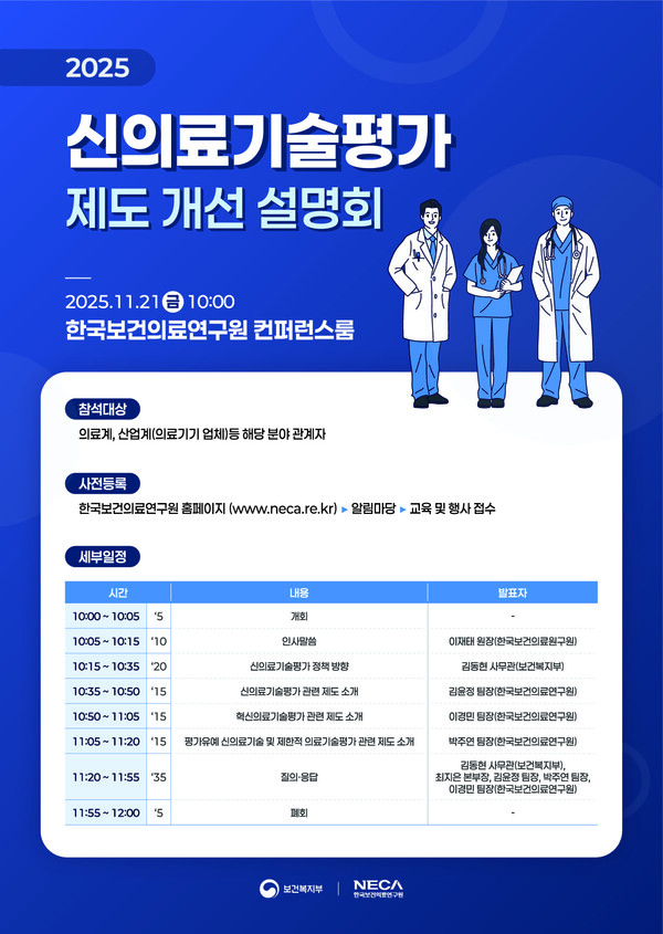 NECA 이재태 원장은 “이번 설명회가 변화된 신의료기술평가 제도의 주요 내용을 공유하며 현장의 이해를 높이고, 의료기술 발전과 국민 안전이 조화를 이루는 방향으로 함께 나아가는 계기가 되길 바란다"고 말했다.